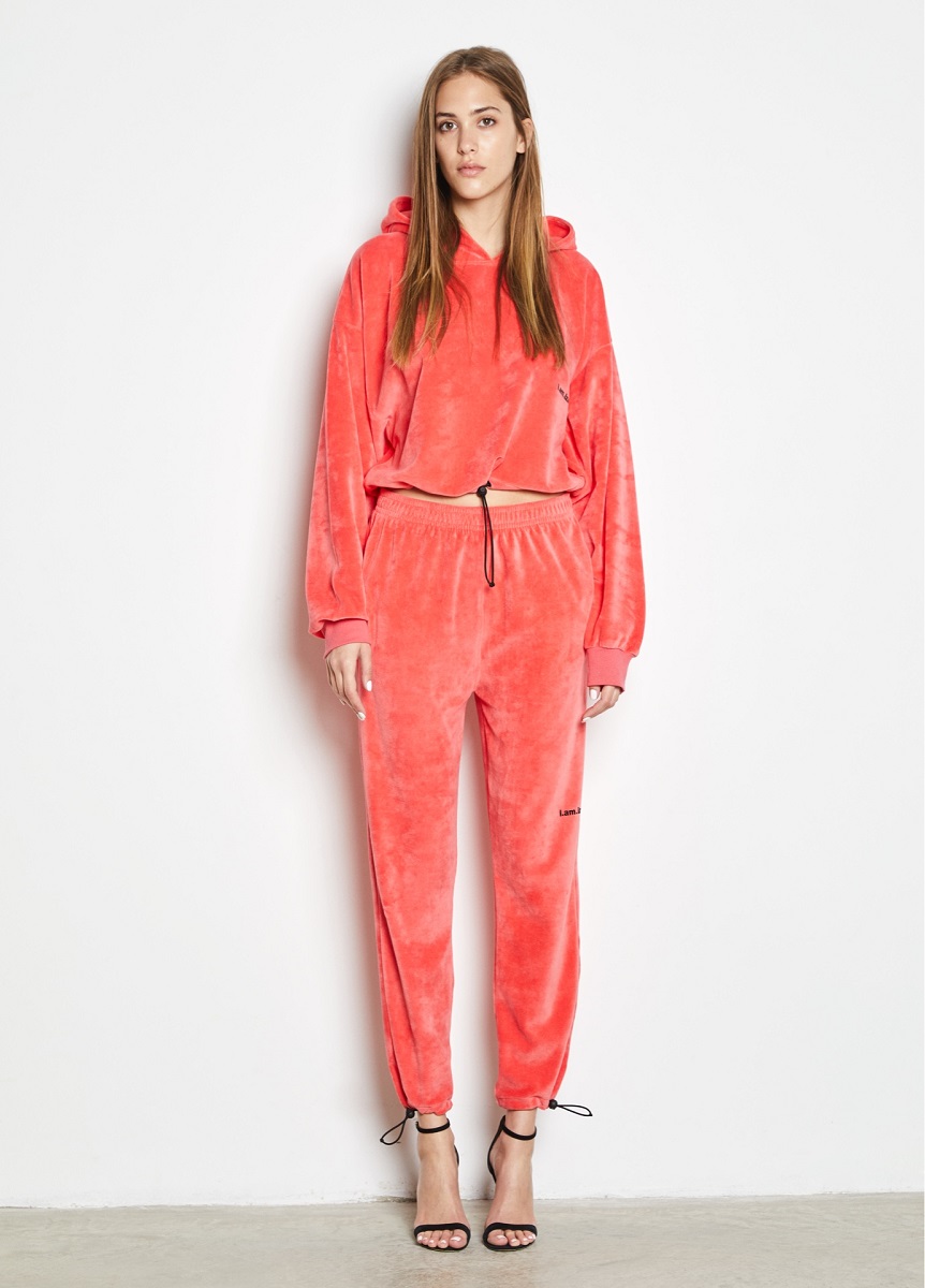 Tracksuit with adjustable stops, a very light cut, slightly oversized sweatshirt with dropped sleeves.